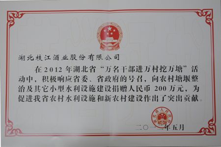 5月22日,黨委書記張華代表枝江酒業(yè)出席了在武漢召開的全省萬名干部進(jìn)萬村挖萬塘總結(jié)表彰會。省委書記李鴻忠出席會議并講話,省委副書記、省…