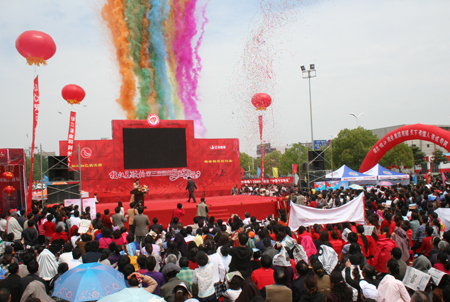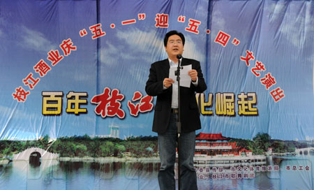 4月23日,枝江酒業(yè)集團(tuán)玖源包裝有限公司總經(jīng)理劉鳳春在公司門口為獲得2009年度生產(chǎn)標(biāo)兵的10名優(yōu)秀員工舉行歡送儀式,獎(jiǎng)勵(lì)他們赴三峽旅游。 …