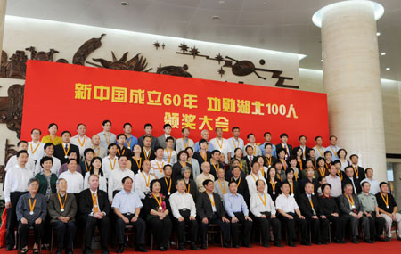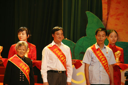 9月15日晚,在宜昌劇院舉行的市總工會慶祝新中國成立60周年文藝晚會上,被評選為新中國成立以來宜昌最具影響力十大勞模的蔣紅星、俞學鋒、王…
