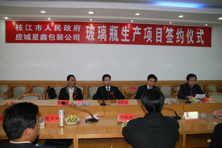 4月8日,枝江市市長(zhǎng)劉建新與應(yīng)城市星鑫包裝有限公司董事長(zhǎng)胡志雄在枝江酒業(yè)行政大樓多功能廳簽下高檔精白料玻璃瓶項(xiàng)目投資協(xié)議。宜昌市委常委…