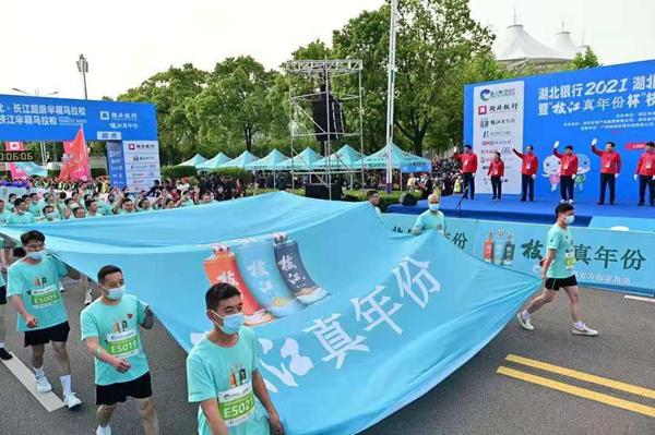 5月5日上午2021湖北長(zhǎng)江超級(jí)半程馬拉松在鄂州市枝江市石首市嘉魚(yú)縣巴東縣5地同時(shí)鳴槍開(kāi)跑 這是湖北省疫…