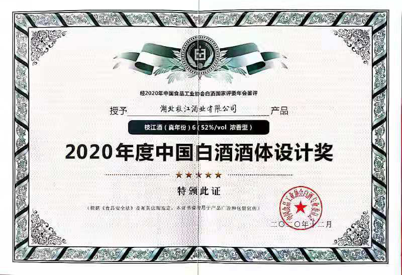 近日,在2020年白酒國家評委年會上,“52%vol枝江真年份6”憑借窖香幽雅,糧香舒適,陳香突出,綿甜柔順,回味悠長的卓越品質(zhì)脫穎而出,以優(yōu)…