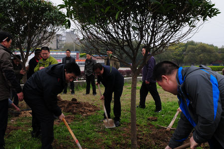 3月19日,由枝江酒業(yè)總裁曹榮開帶隊,總經(jīng)理陳洪衛(wèi)、黨委書記張華等高管及部分員工代表到百里洲鎮(zhèn)進行義務(wù)植樹活動。百里洲鎮(zhèn)被譽為“萬里長江第一洲”,是全國少有的農(nóng)業(yè)大鎮(zhèn),以其獨特的地理位置在全國有較高的知名度。特別是近幾年火熱的環(huán)島自行車比賽,吸引了不少外國朋友的參與,已經(jīng)成為自行車愛好者的樂園。為支持百里洲做好綠化、亮化和美化工程,枝江酒業(yè)積極參與其中。枝江酒業(yè)總裁曹榮開表示:栽下一棵樹,是為了結(jié)下三分緣,結(jié)一分“綠滿荊楚”的緣,結(jié)一分為“城鄉(xiāng)一體、四化同步”添新綠的緣,結(jié)一分融入大自然的緣。百里洲鎮(zhèn)在抗洪廣場周邊規(guī)劃了“義務(wù)植樹林”,枝江酒業(yè)在規(guī)劃的區(qū)域植下9棵樹冠飽滿圓潤、分支點在1.6米以上、米徑10米以上的桂花樹。