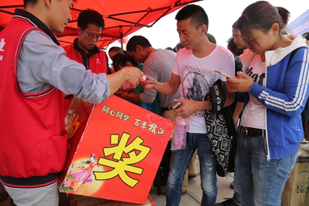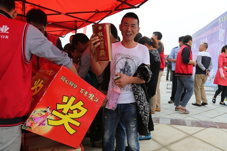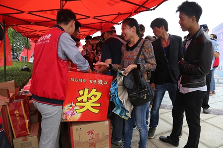 枝江酒業(yè)借用這樣的熱鬧場面,在相親活動(dòng)現(xiàn)場進(jìn)行微信掃碼贈(zèng)酒活動(dòng),吸引了前來參加相親活動(dòng)的各階層人士。在現(xiàn)場展示的產(chǎn)品有枝江王、百年枝江韻系列產(chǎn)品、情義結(jié)、謙泰吉1號、苦蕎酒等。參與者只要現(xiàn)場關(guān)注枝江酒業(yè)微信公眾號,分享到朋友圈,即可獲得一次抽獎(jiǎng)的機(jī)會(huì),分別會(huì)抽出“十五年經(jīng)典”、“枝江情義結(jié)”、“小金版枝江王”、“小苦蕎酒”等不同價(jià)位的枝江酒。枝江酒業(yè)曾經(jīng)在今年夏天,利用枝江市納涼晚會(huì)舉行微信掃碼贈(zèng)酒活動(dòng),與枝江市民有效互動(dòng),讓枝江人“家家抱得美酒歸”成為酒城風(fēng)景,而在此次相親節(jié)上,在“千年等一回”的浪漫中,“相親抱得美酒歸”又一次成為枝江這座中國白酒名城的風(fēng)景。枝江市婦聯(lián)準(zhǔn)備了豐富的文藝節(jié)目,在舞臺的大屏幕上,重復(fù)播放著枝江酒業(yè)出品的《酒城之戀》畫面,有一位現(xiàn)在枝江工作的外地小伙子說,希望能在枝江收獲一段像《酒城之戀》中的愛情故事。