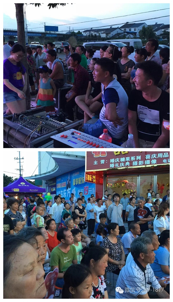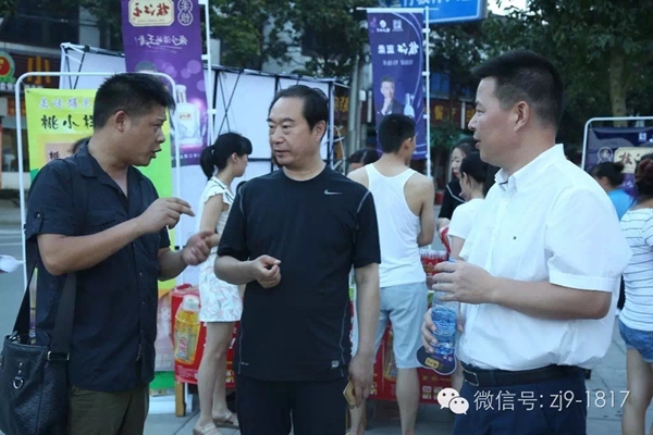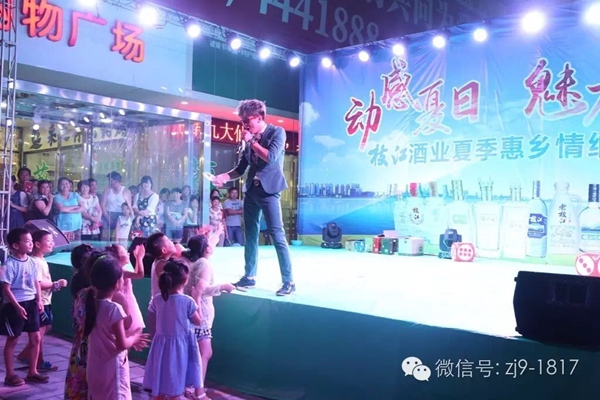 7月23日,枝江酒業(yè)在安福寺鎮(zhèn)舉辦“動感夏日  魅力枝江”鄉(xiāng)村行文藝演出,為當(dāng)?shù)厝罕妿碡S富的文化套餐。這是枝江酒業(yè)在這個夏天“送戲下鄉(xiāng)”的第一站。枝江酒業(yè)總裁曹榮開、銷售公司總經(jīng)理侯先圣到文藝演出現(xiàn)場,與代理商趙勇、王春華、王國慶一起就新品推廣做調(diào)研。