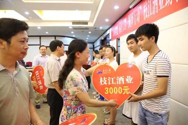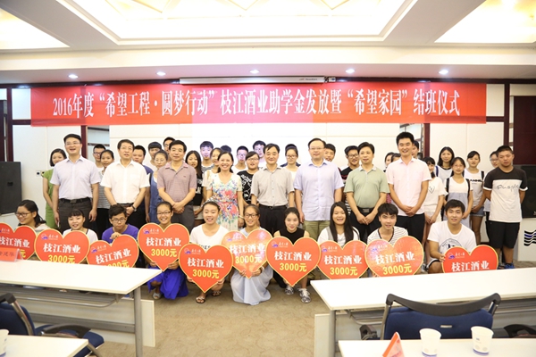 8月25日, 2016年度“希望工程?圓夢(mèng)行動(dòng)”枝江酒業(yè)助學(xué)金發(fā)放暨“希望家園”結(jié)班儀式在枝江國(guó)際大酒店隆重舉行。該項(xiàng)活動(dòng)由共青團(tuán)枝江市委和枝江酒業(yè)共同舉辦。