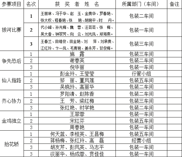 枝江酒業(yè)慶“三?八”女職工趣味運(yùn)動會獲獎情況